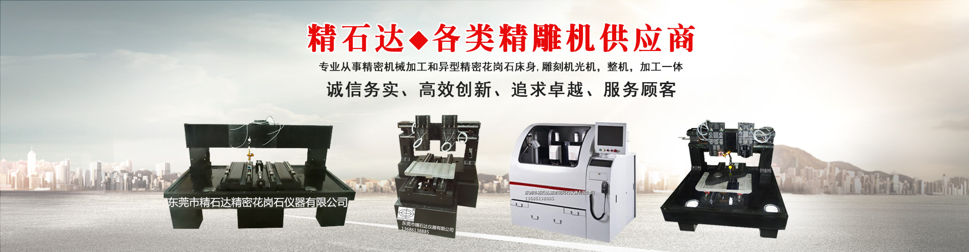 東莞市精石達儀器有限公司是一家專業從事精密機械加工和異型精密花崗石床身,雕刻機光機,整機,加工于一體的花崗石精密產品的專業生產企業。公司一直致力于濟南青花崗石的研發、利用、生產組裝與銷售,主要產品有花崗石精密檢測平板、角尺、方尺、平尺、平行規、方箱、V型塊和測量表座等精密量儀量具,以及各種機床工作臺,橫梁、導軌、X軸、Y軸,Z軸 等與精密機床相配套的花崗石機械構件如:玻璃精雕機,高光機,雕銑機等,并...